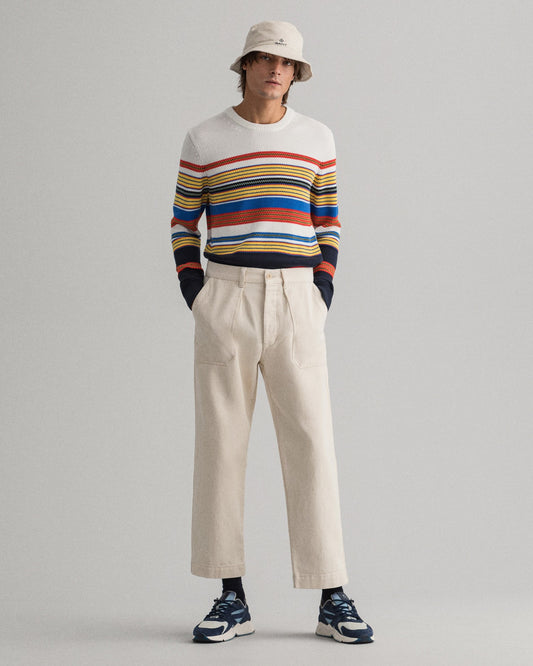 GANT Men's Multi Colored Striped C-Neck Sweater